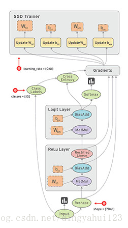 Tensorflow是一个通过计算图的形式来表述计算的编程系统,计算图也叫数据流图,可以把计算图看做是一种有向图,Tensorflow中的每一个节点都是计算图上的一个Tensor, 也就是张量,而节点之间的边描述了计算之间的依赖关系(定义时)和数学操作(运算时)。a=x*y; b=a+z; c=tf.reduce_sum(b);