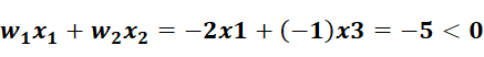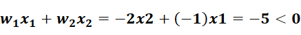 S1:w1x1+w2x2=-2x2+-1x1=-5<0