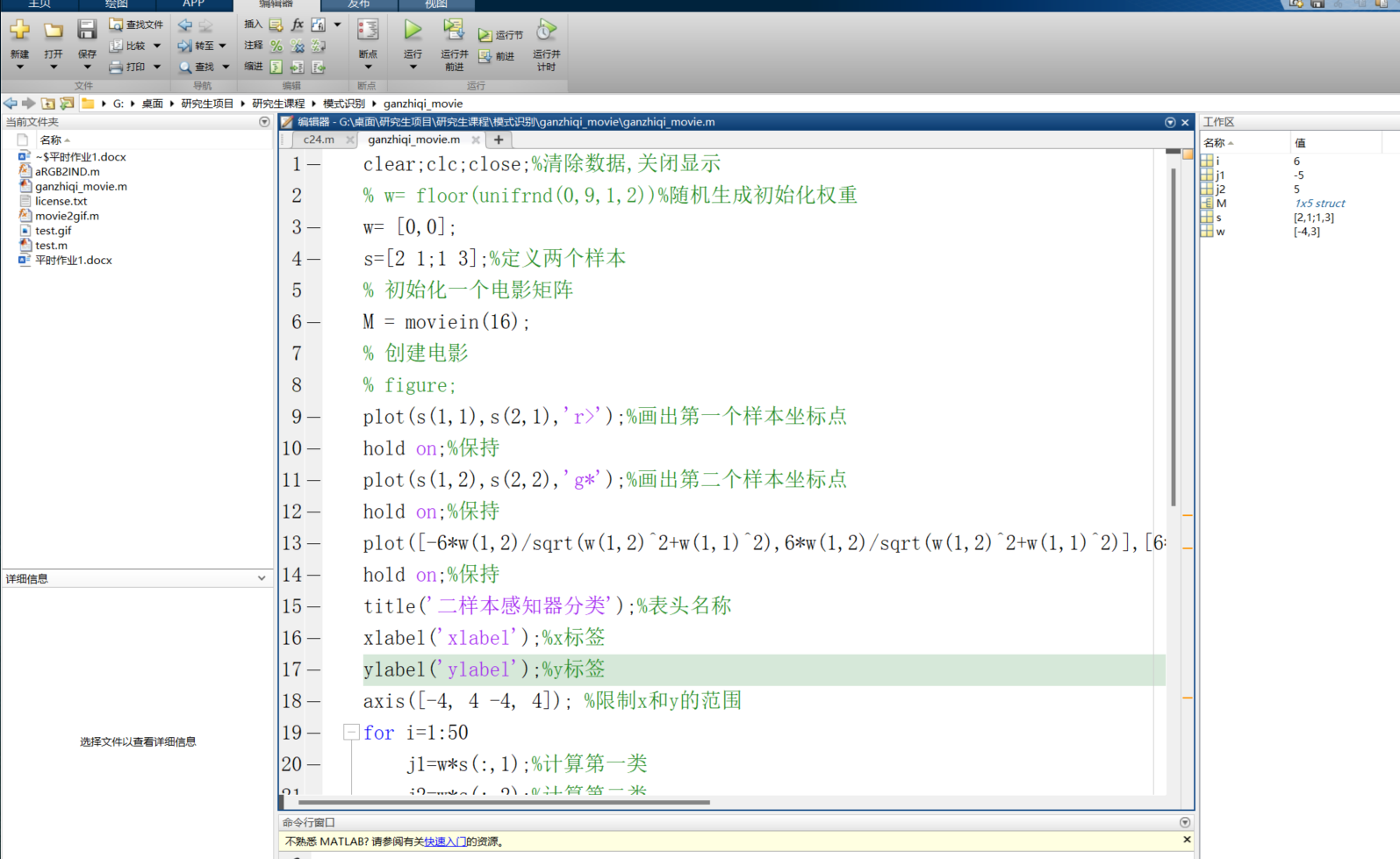 本文介绍利用二样本感知器的matlab程序设计,接下来我会记录我的matlab学习记录,很高兴能和大家分享!????????????希望你能有所收获。