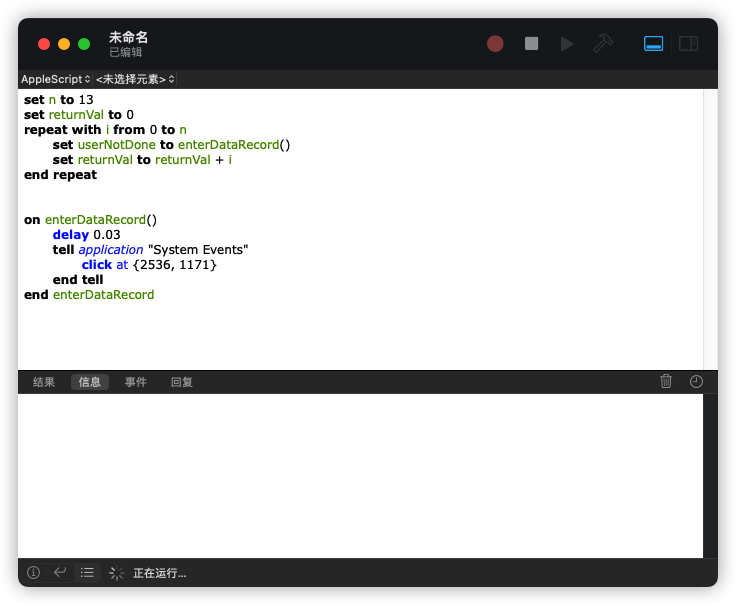 以上就是优秀御姐最近收集整理的关于AppleScript 模拟鼠标重复点击一、打开AppleScript二、怎么获取鼠标坐标?三、用cliclick+python四、大佬的AppleScript的全部内容,更多相关AppleScript内容请搜索靠谱客的其他文章。