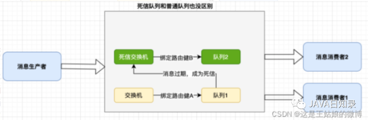 * 死信队列,是一个普通队列,用于被监听
