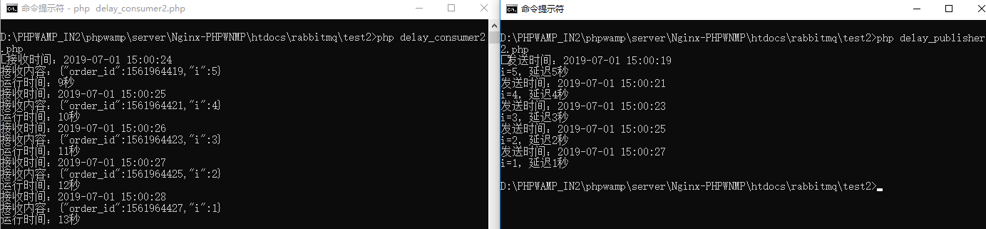 使用方法:先运行delay_consumer1.php,再运行delay_publisher1.php