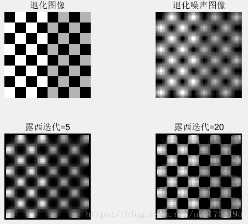 subplot(2,2,4),imshow(pixeldup(f20,8),[]),title("露西迭代=20");