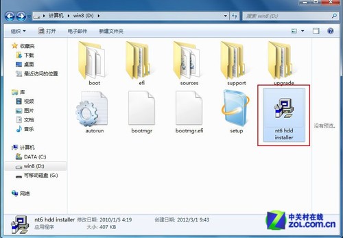 利用本地硬盘与利用 U 盘安装 Windows 8 操作系统的方法类似,在安装系统系统之前我们需要制作一个本地硬盘版本的系统安装盘。除了需要 Windows 8 系统 ISO 镜像文件以外,还将使用到 nt6 hdd installer 这个硬盘安装辅助工具。