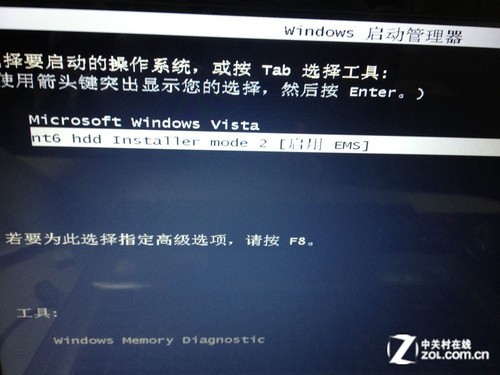重启之后,我们会看到一个全新的启动管理器,这是 Windows 8 系统的一大改变,不同于以往字符风格的界面,图文并茂且能用鼠标来操作选择系统,可以说是一个全新的体验。