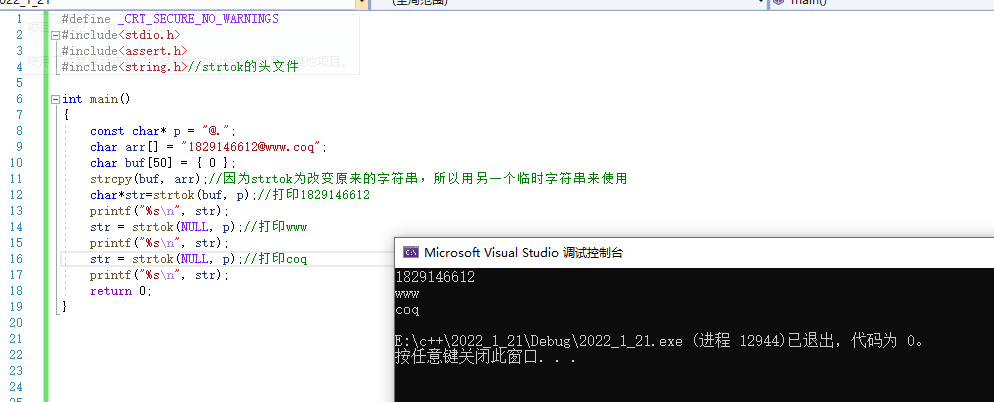#include<string.h>//strtok的头文件