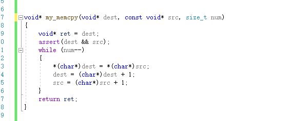 void* my_memcpy(void* dest, const void* src, size_t num)