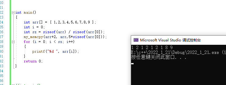 my_memcpy(arr+6, arr,2*sizeof(arr[0]));//把arr+6位置的二个数改成数组首元素开始的二个数