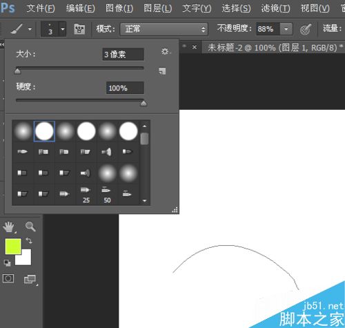 然后新建一层图层,点击画笔工具,选择3像素的硬头画笔