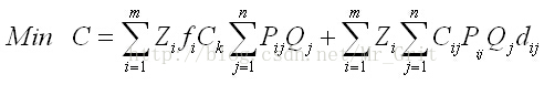 ! f:工厂到配送中心距离,z:每个配送中心是否被选;