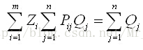 @sum(city(i):@sum(company(j):z(i)*P(i,j)*Q(j)))=@sum(company(j):Q(j));