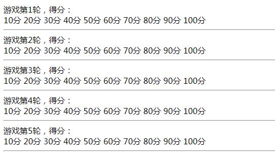 document.write("游戏第"+a+"轮,得分:"+"<br />");