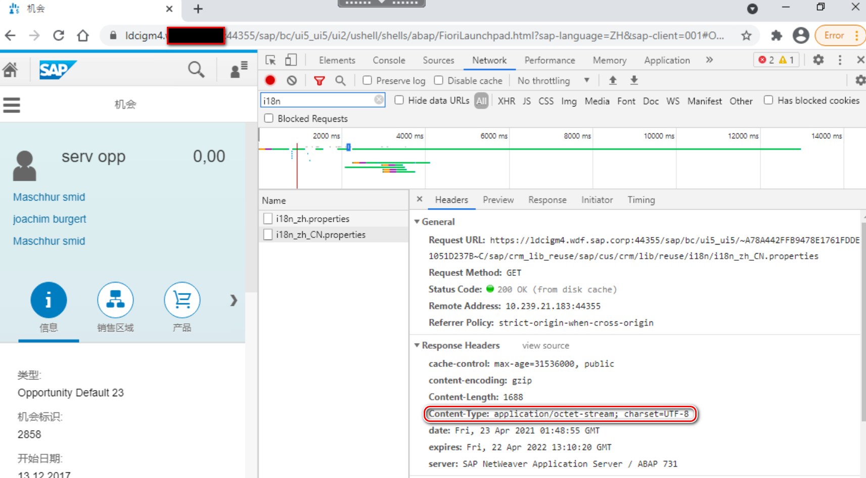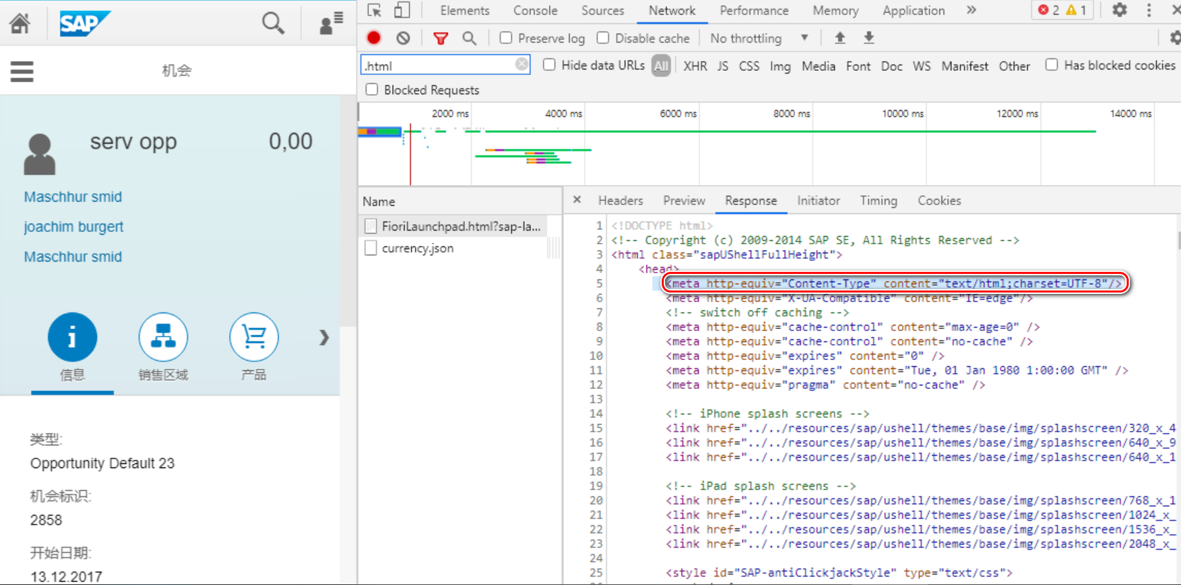 最后加载的 Fiori Launchpad html 里定义的content 为:text/html; charset=UTF-8