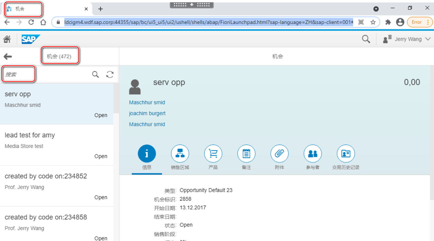 https://gm4:44355/sap/bc/ui5_ui5/ui2/ushell/shells/abap/FioriLaunchpad.html?sap-language=ZH&sap-client=001#Opportunity-manageOpportunity&/detail/Opportunities(guid’FA163EE5-6C3A-1ED7-B883-0ED9A99A201F’)