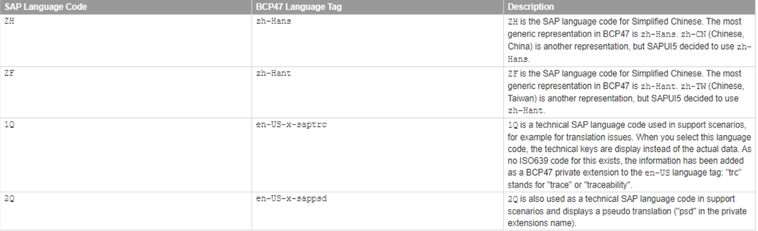 SAP 专有 Language code 通常都和 ISO 639 alpha-2 里定义的 Language code 一一对应,但并不总是如此。