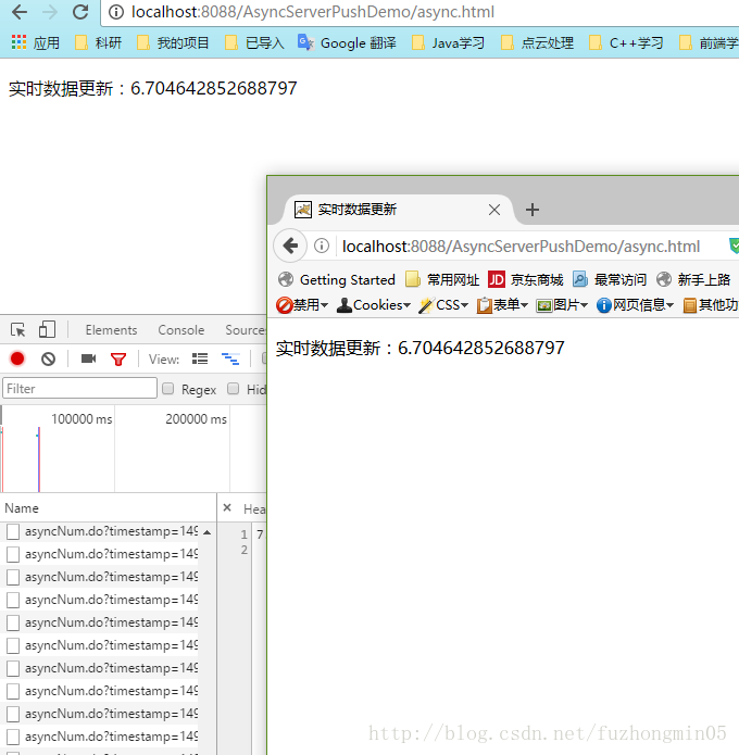 在浏览器上请求URL:http://localhost:8088/AsyncServerPushDemo/async.html,得到响应如图所示:
