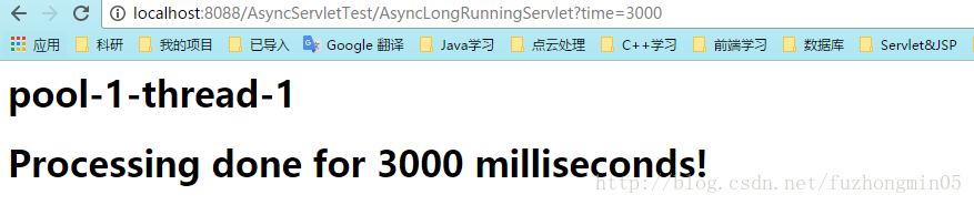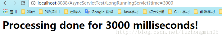 在浏览器上请求URL:http://localhost:8088/AsyncServletTest/LongRunningServlet?time=3000,得到响应如图所示: