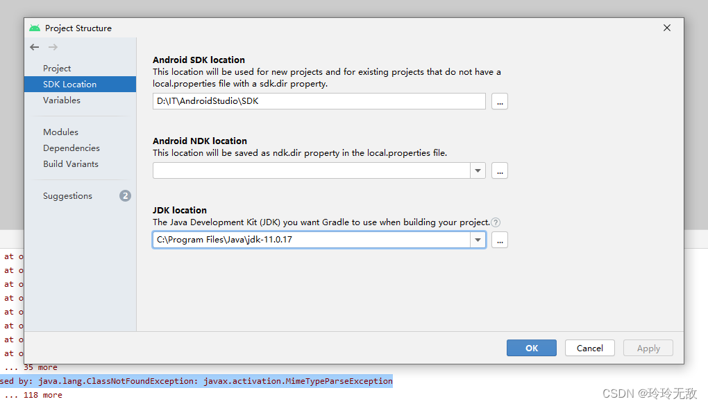 该问题可能是androidstudio指向的jdk版本导致的,可仿照如下修改成需要的jdk