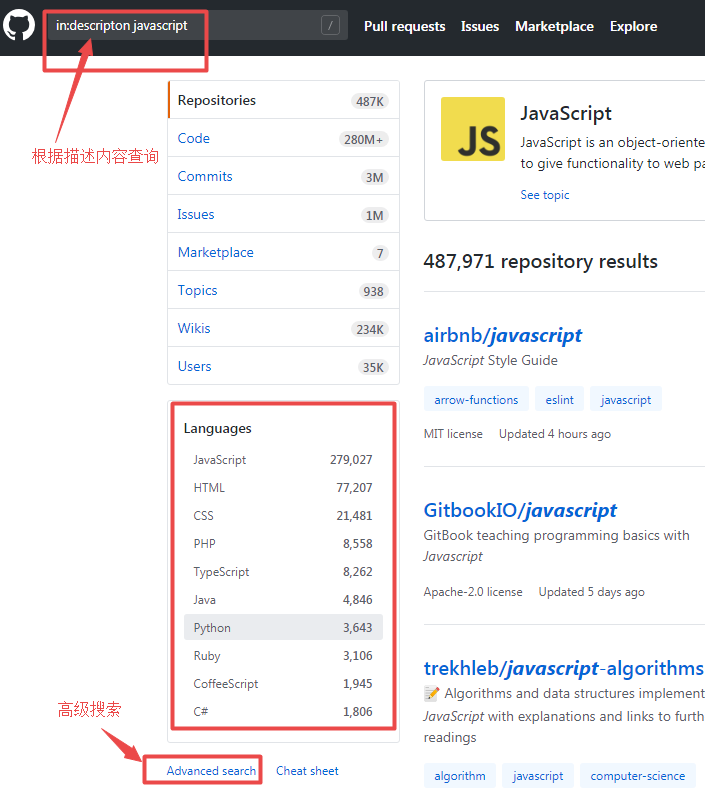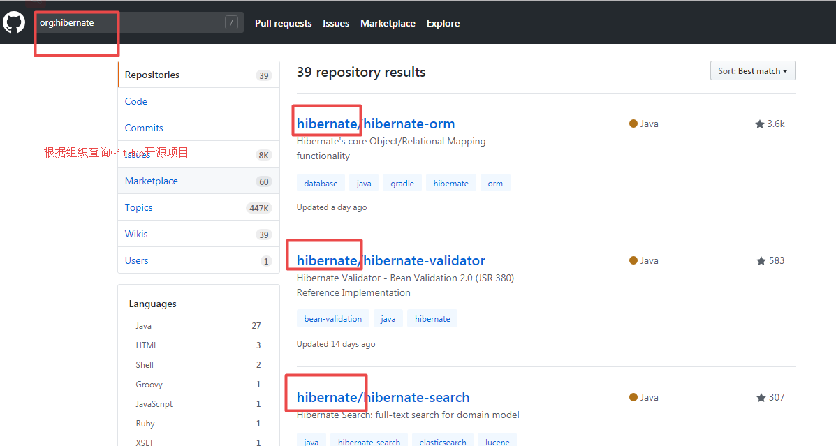 6. 根据某个人或组织,或者编程语言搜索