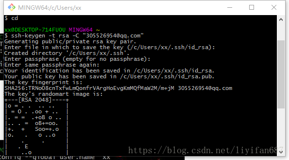 1. 先输入ssh-keygen –t rsa –C “邮箱地址”,注意ssh-keygen之间是没有空格的,其他的之间是有空格的。
