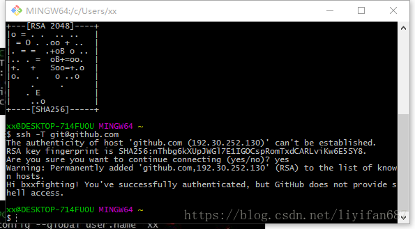 以上就是动听水蜜桃最近收集整理的关于Git与Github的连接和使用1. 先输入ssh-keygen –t rsa –C “邮箱地址”,注意ssh-keygen之间是没有空格的,其他的之间是有空格的。2. 会在c盘指定位置产生 id_rsa.pub,复制在github上设置里添加key3. 验证一下是否设置成功,在git bash下输入如下命令:4. 配置用户名和邮箱:5. 现在为止,就算把Git和github配置完了,现在来托管项目,刚才已经在github上面创建了一个叫buxingxing的仓库,那么现在就在本地创建一个目录,的全部内容,更多相关Git与Github的连接和使用1.内容请搜索靠谱客的其他文章。