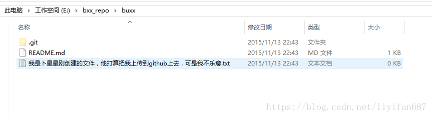 其中bxxfighting是我在网站上注册时使用的用户名,buxingxing.git是我为这个项目建立的仓库名,在网站上显示是这样的: