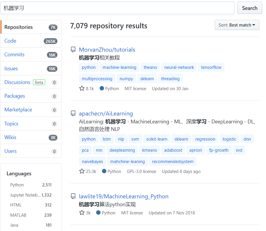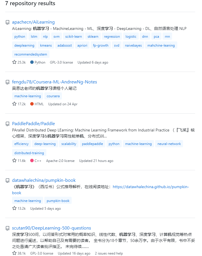 7000个,且排序并不是按stars数和时间来的,加大了查找好到教程项目的难度。