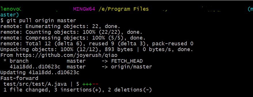 2、输入git pull origin master 把github上的文件重新拉下来
