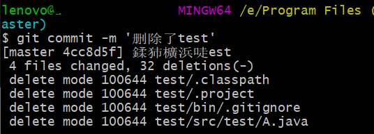 git commit -m '删除了test'
