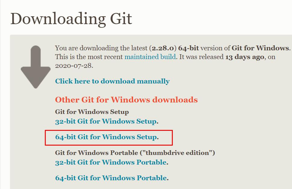 按照自己电脑的操作系统下载,我的是Windows10 64位,所以安装版本为:Git-2.28.0-64-bit.exe