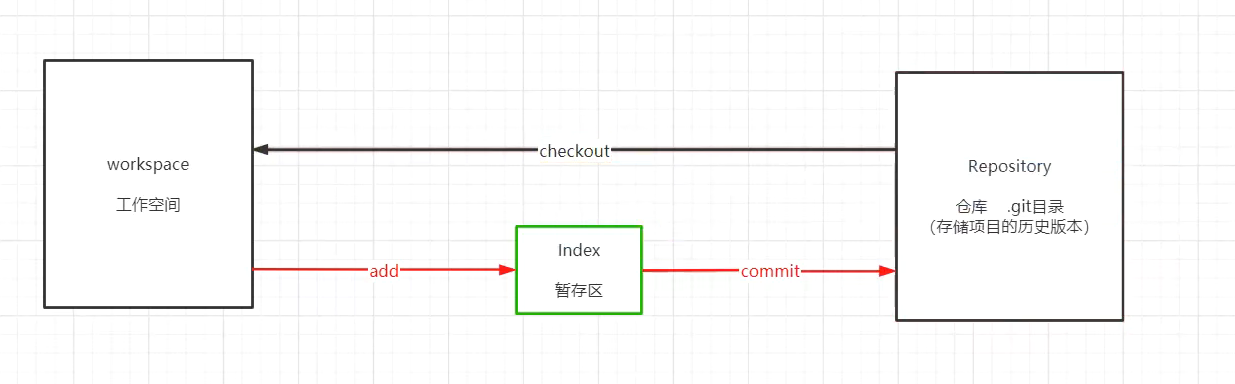 - Repository(版本仓库):存放项目历史版本的目录,就是执行git innit指令之后,在工作空间文件夹生成的.git的目录