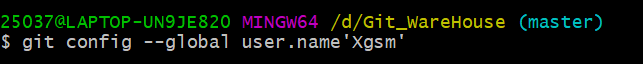 (5) git config --global user.name "Your Name":设置用户名字(如果初次使用Git没有设置用户名和邮箱会提交失败)