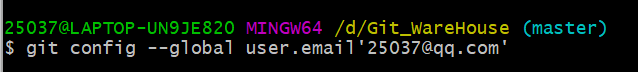 (6)git config --global user.email "you@example.com":设置用户邮箱(邮箱可以是自定义虚拟的)