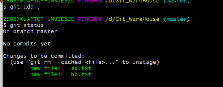 (3)git add . :将工作空间内所有内容存放在缓冲区中