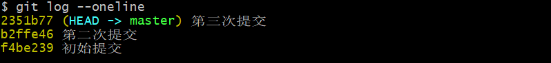 (8)git log --oneline :只显示初始版本到当前版本的信息,版本的版本号只显示一行