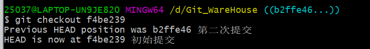 执行git checkout f4be239 (回滚到初始提交)