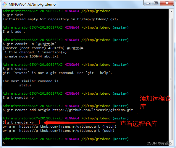 4)在gitdemo目录中添加一个测试文件,如abc.txt