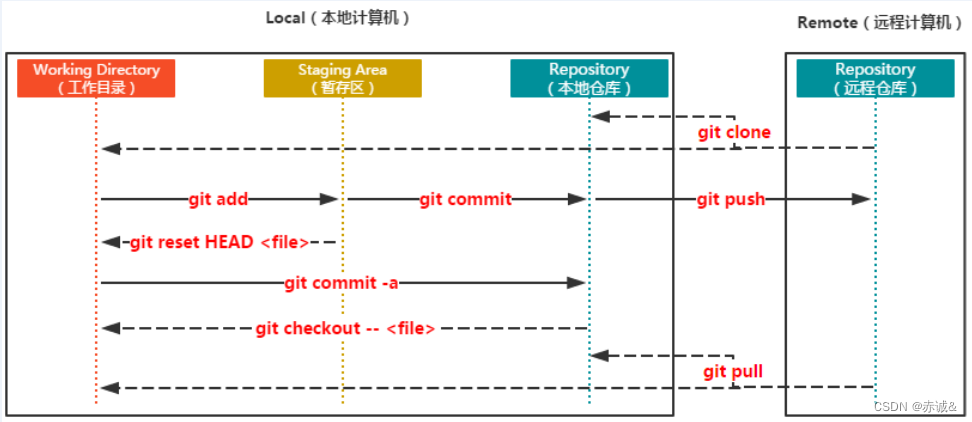Repository(本地仓库):提交到本地仓库的文件。- 远程计算机