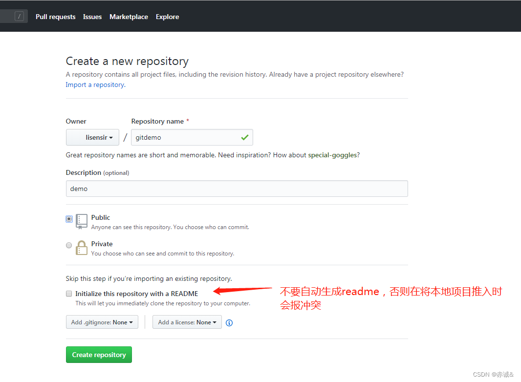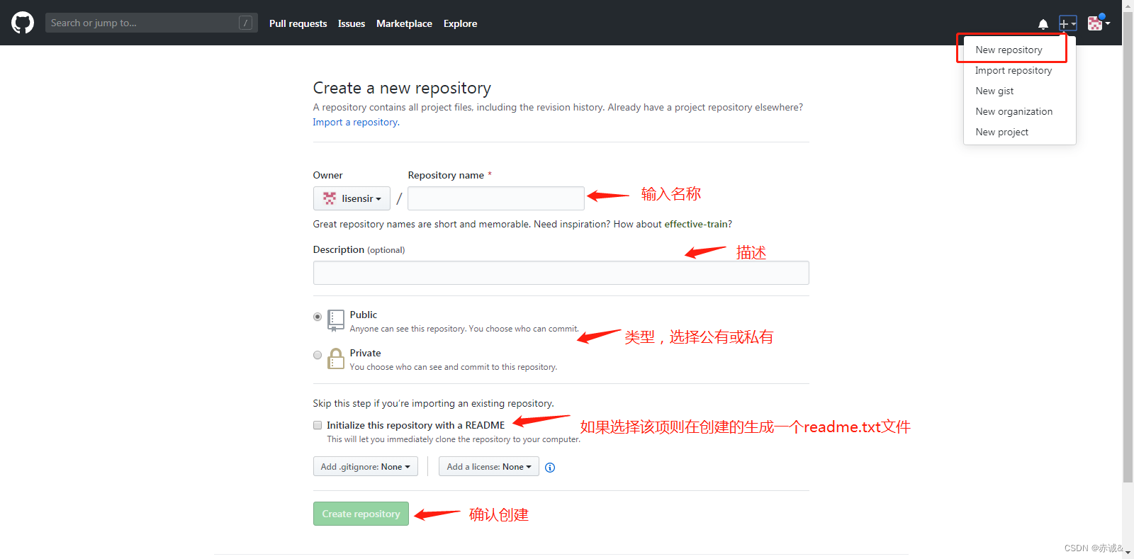 github上repository分为public和private,public可以被其他人看到并clone;而private是不能被别人看到的。这里把repository创建为private的场景为:自己创建一个私人项目,但是又需要和其他developer一起开发,所以,需要developer都能克隆这个private repository,并且都能提交到这个private repository。