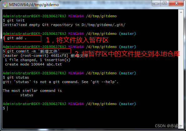 5)将新增的abc.txt文件加入的本地仓库(分两步,见下图)