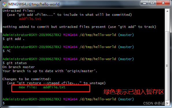在git管理的目录(如上例中的hello-word目录),新建一个文件