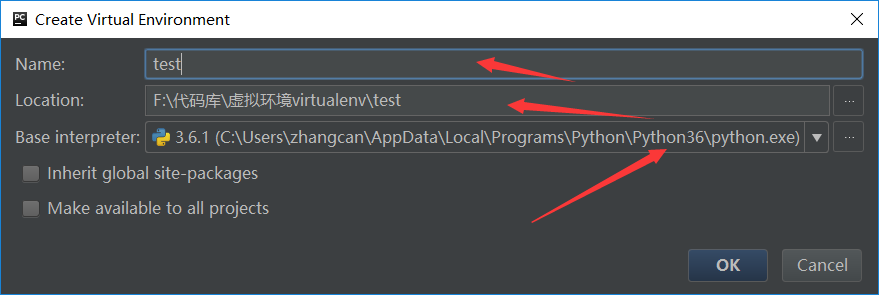 这是新建虚拟环境,如果是把已有的环境添加到pycharm中,需要选择这个