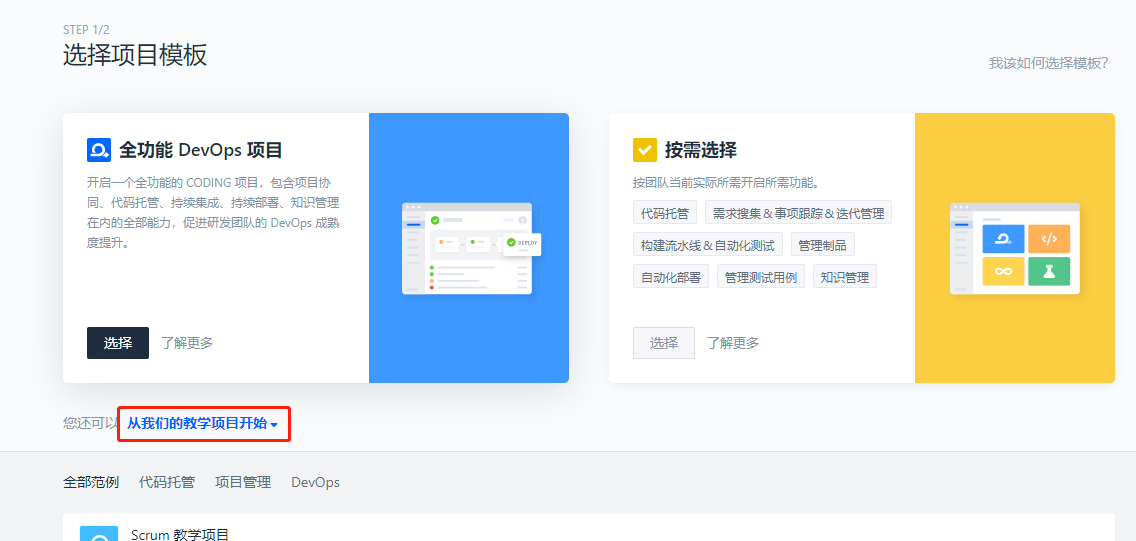 我们点击代码托管就好了,别的功能这个项目暂时用不到,然后完成创建