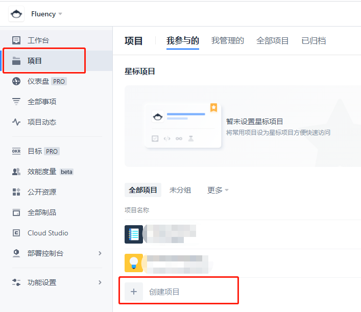 注册完成之后,点击项目,创建一个新的项目文件