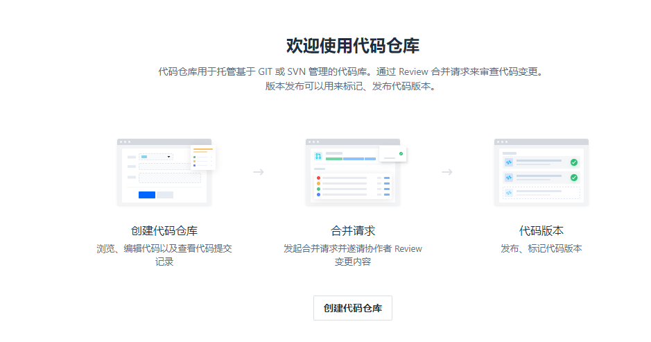 选择代码仓库,然后点击创建代码仓库