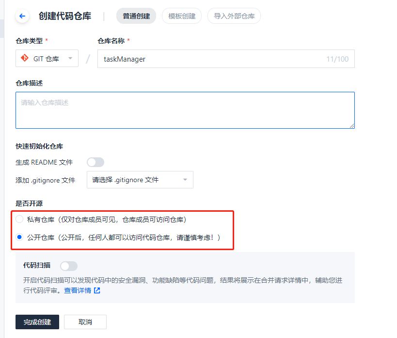 可以选择私有或者开源,这个就看项目性质,和个人选择了