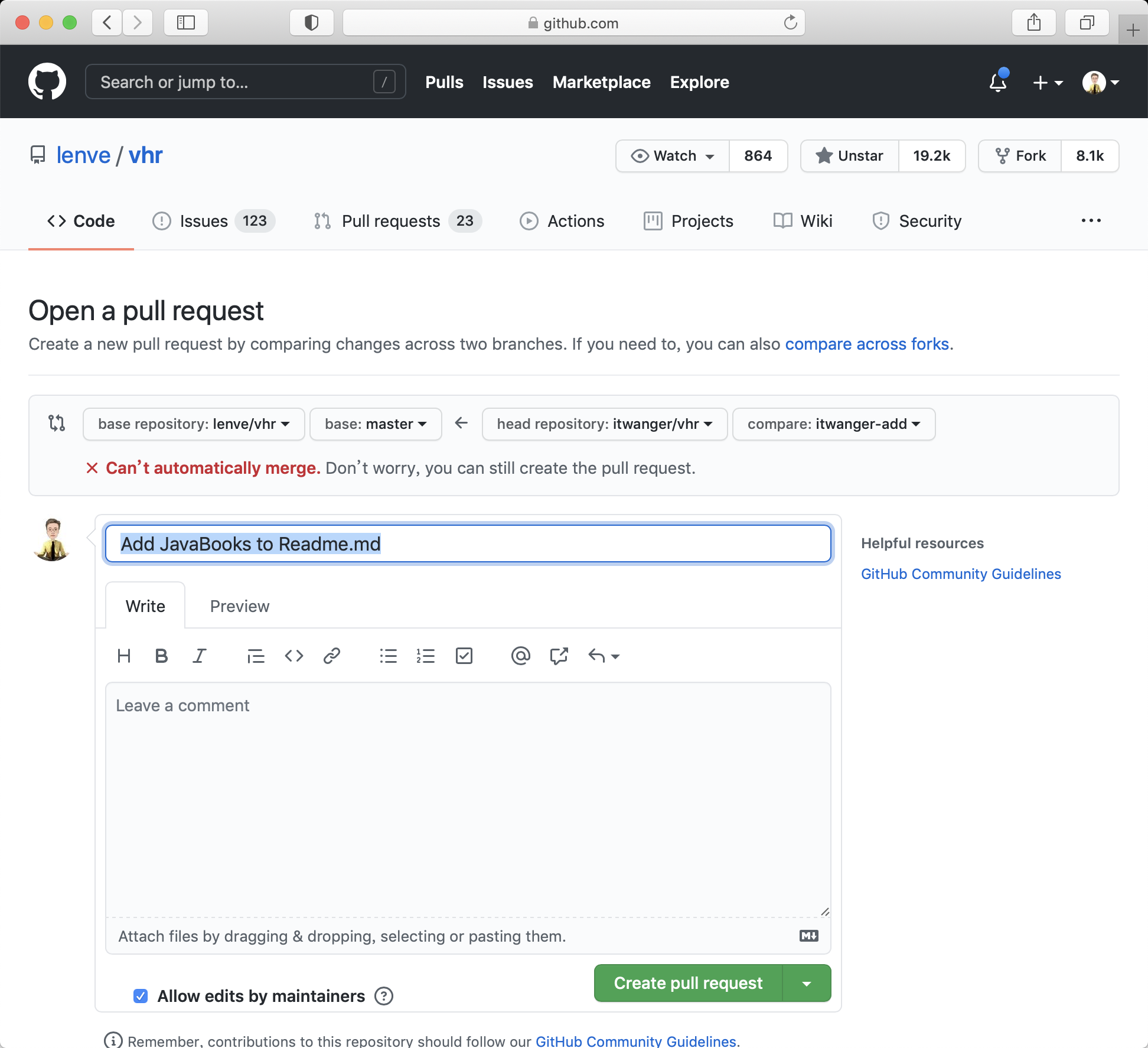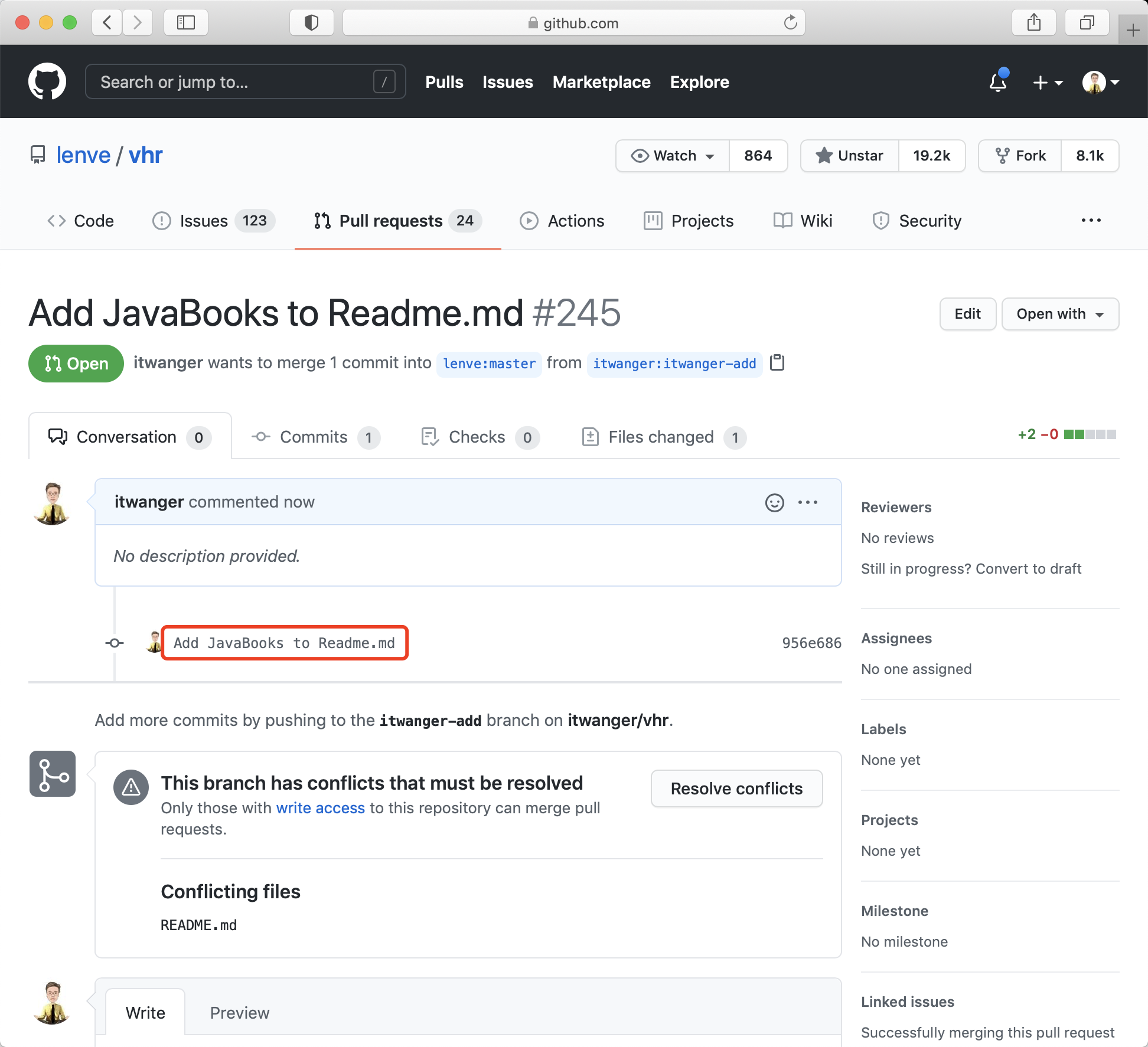 登录完成后,就可以在网页端上看到我们要提交的 PR。