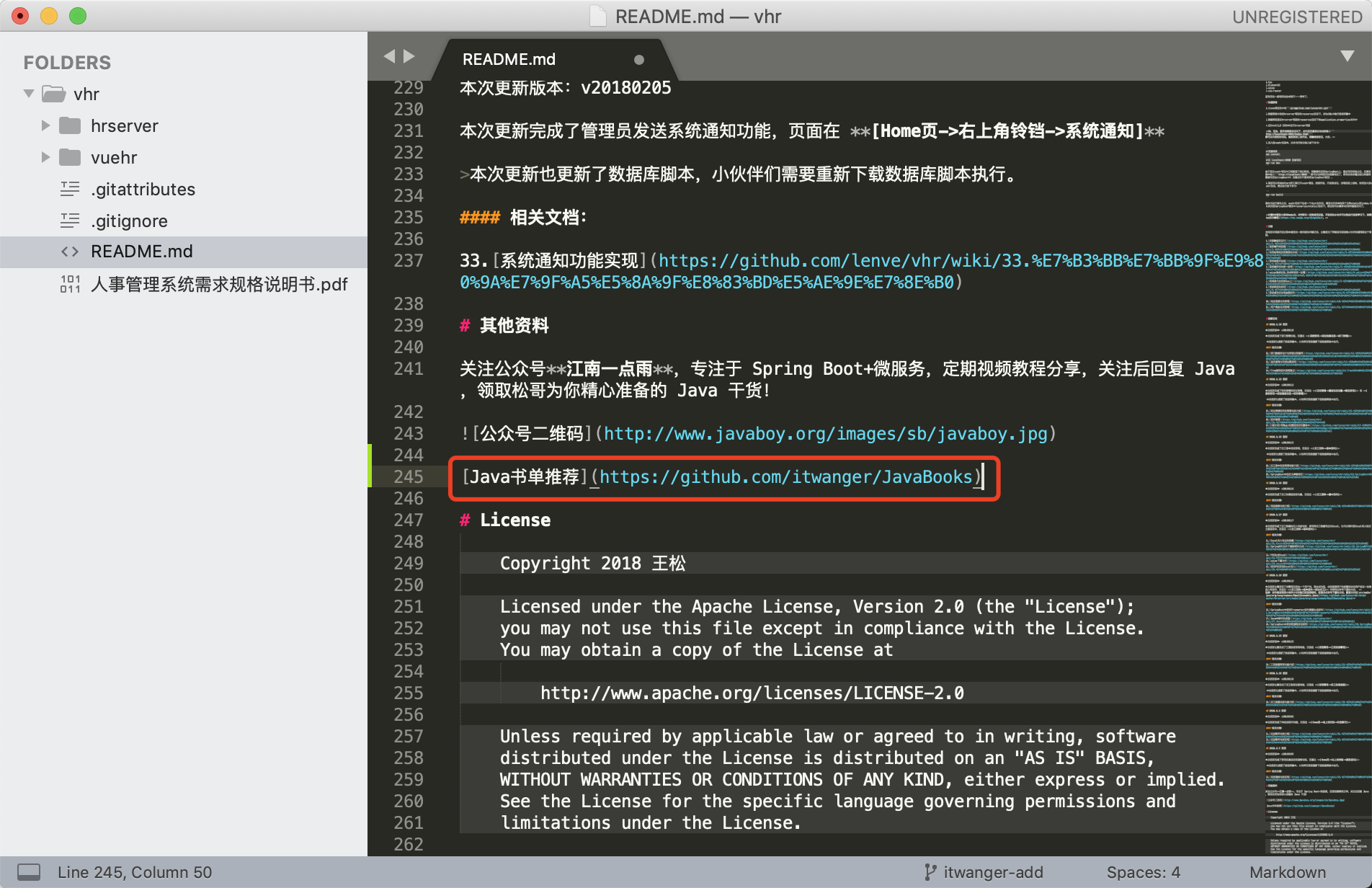 这里先说明一点,我提前已经和江南一点雨沟通过了,所以可以直接编辑他的 README.md。