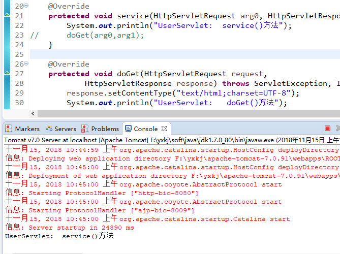 说明我的doGet()方法是好使的,这下真的验证了,service()方法没有转发至doGet方法();