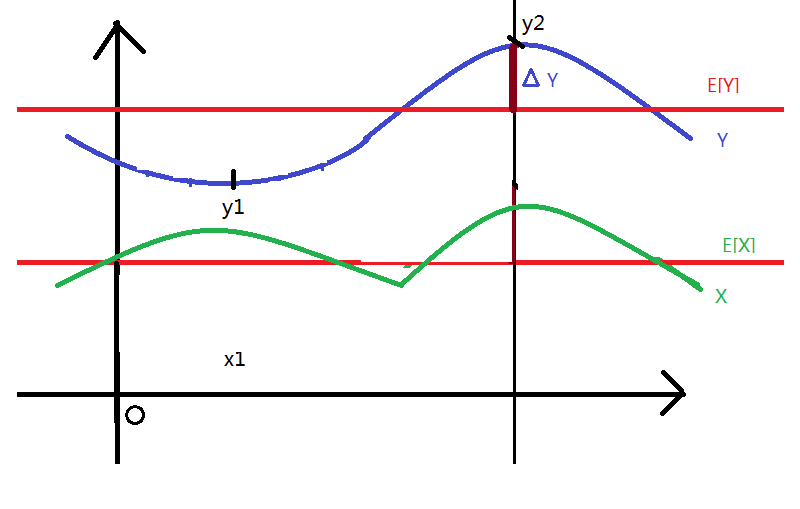 其中y1,y2.....yn 是Y变量的可能取值,E[Y]是X变量的均值,即E[Y] = (y1+y2+...yn) / n